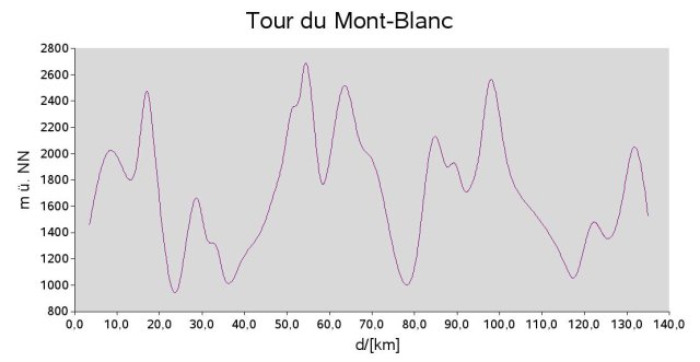 The Tour du Mont Blanc (TMB) leads approx. 180km around the highest mountain massif in Europe. The TMB crosses 3 countries: France, Italy and Swiss. You will climb up at passes to 2500m, crosses nice valleys und have a beautiful view on the top of Europa. On the trail, you can fill up your supplies everey two day, there are many overnight accommodation, but the trail is very popular. So it is better to reservate your overnight accommodation oder use a tent.